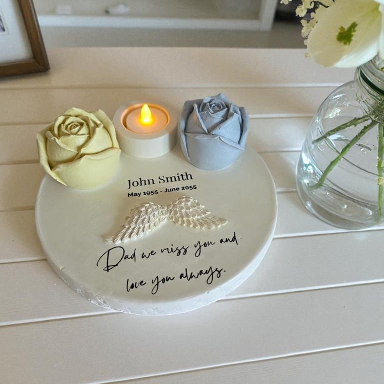 At Wing & Bloom, we create handcrafted memorial pieces that offer comfort, beauty, and a lasting tribute to those you hold dear. Each design features delicate concrete roses and angel wings cast into a single, enduring form—symbolizing eternal love and remembrance for a cherished soul or beloved pet.